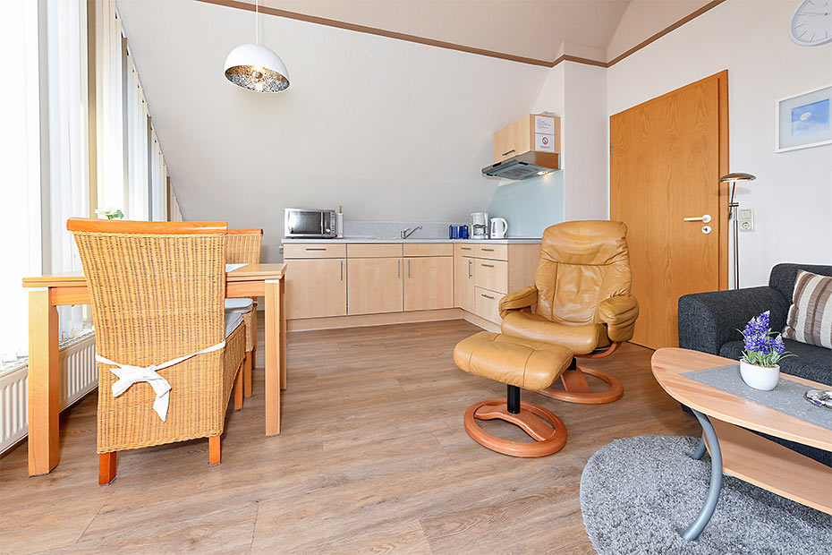 - Wohnraum mit integrierter Küche
