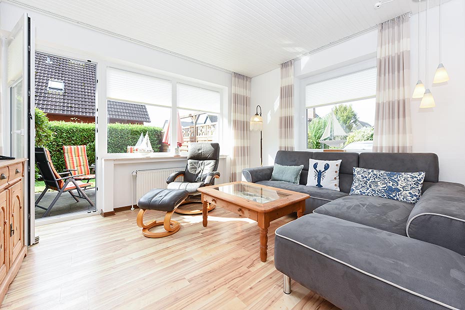 - Wohnraum mit separatem Küchenteil bei offener Raumgestaltung