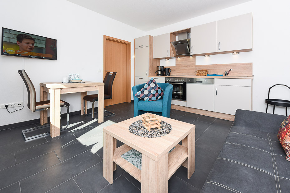 - Wohnraum mit integrierter Küche