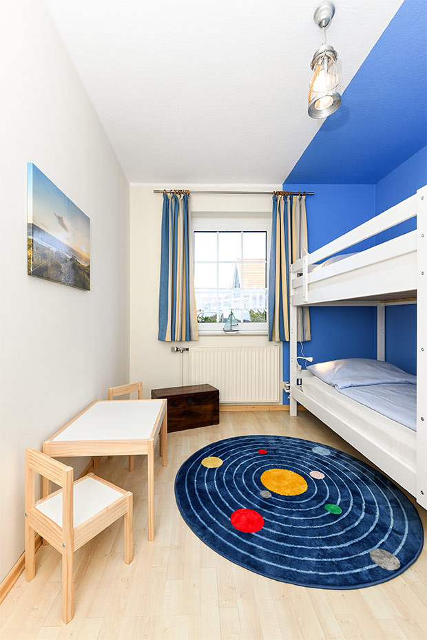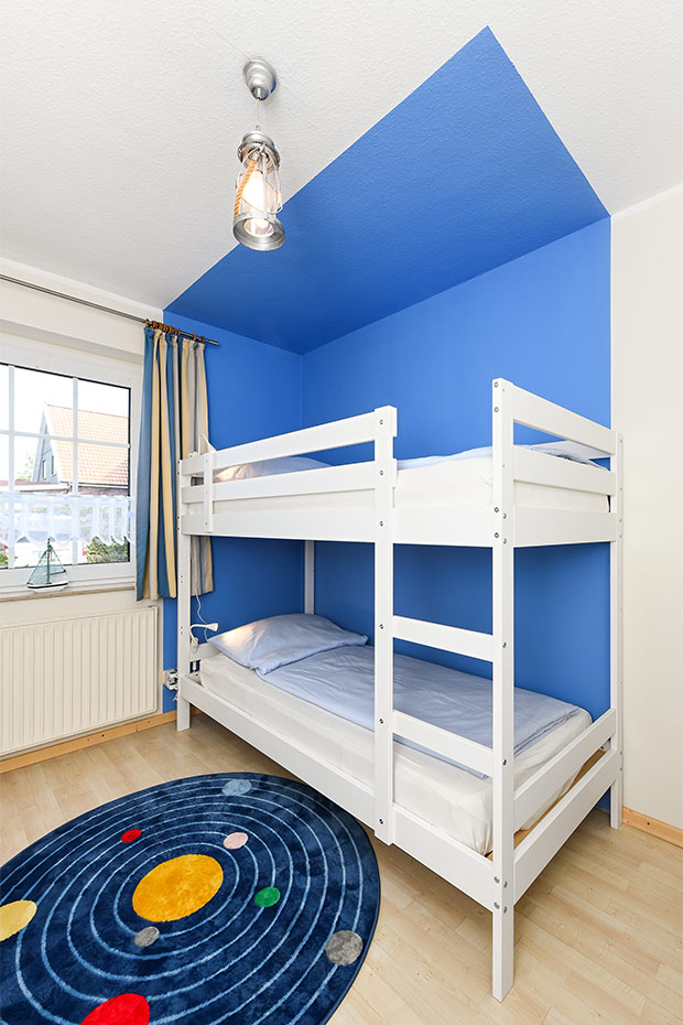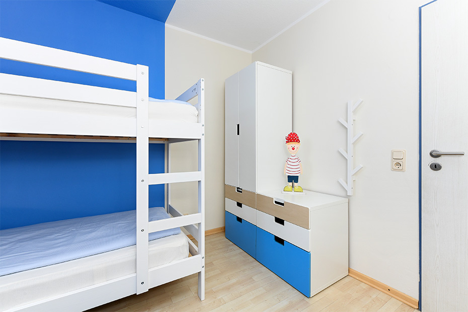 - Verdunkelung: Verdunklungsrollos in den Schlafräumen
