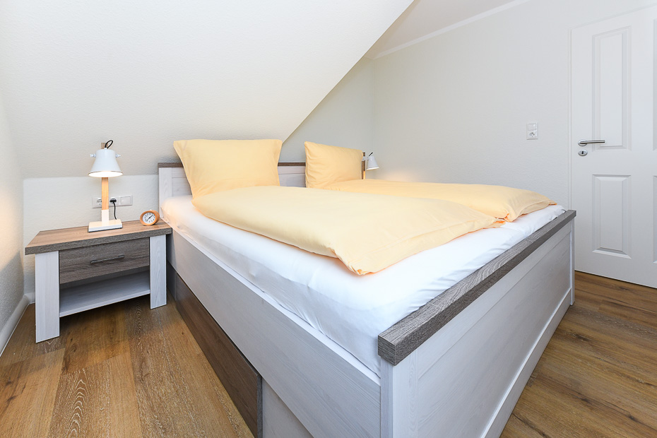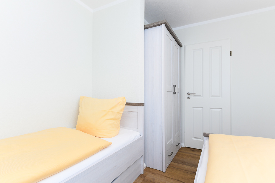 - Schlafzimmer mit Doppelbett im Elternschlafzimmer und zwei Einzelbetten im zweiten Schlafzimmer