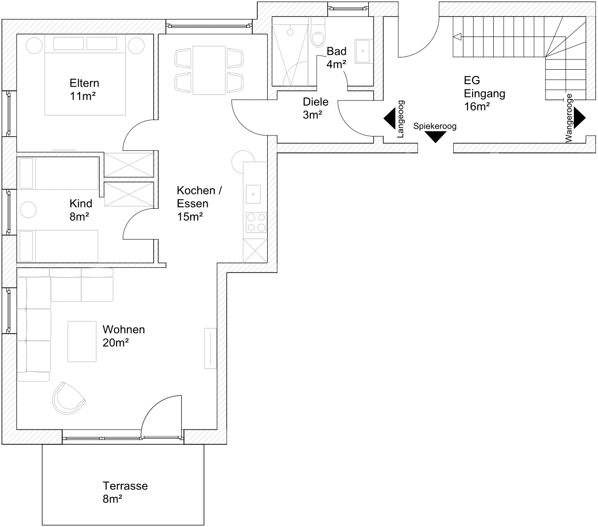 - Terrasse mit Gartenmöbeln (bei allen Wohnungen im Erdgeschoss)