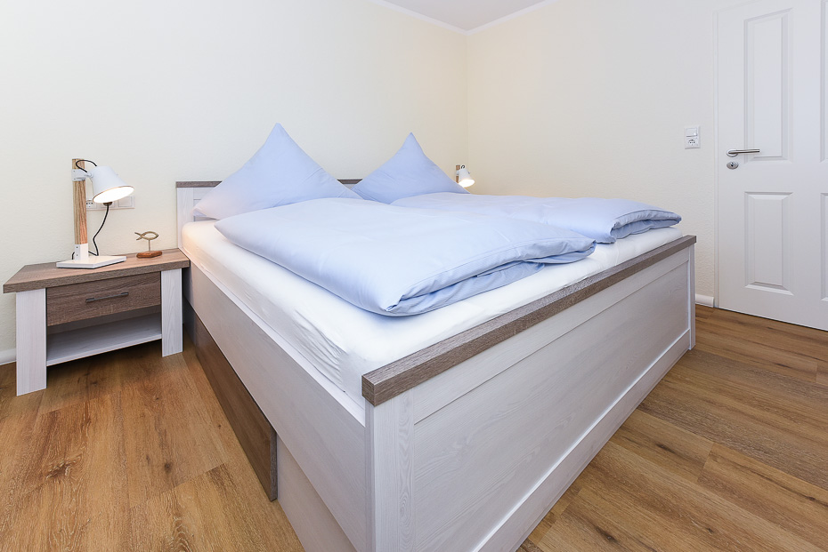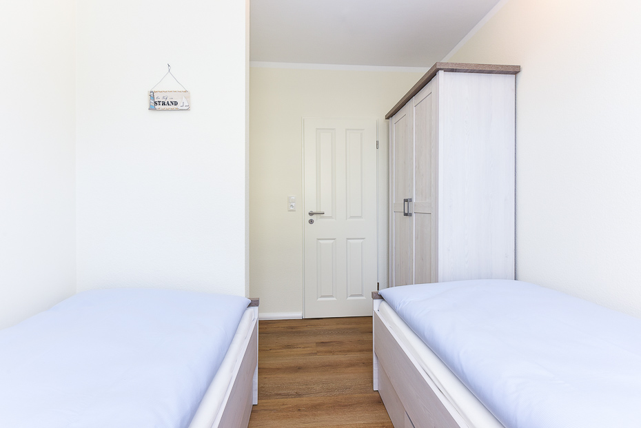 - Schlafzimmer mit Doppelbett im Elternschlafzimmer und zwei Einzelbetten im zweiten Schlafzimmer