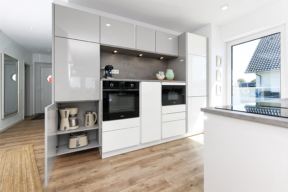 - Herd: Vierplattenherd (Ceran-Kochfelder) und Backofen