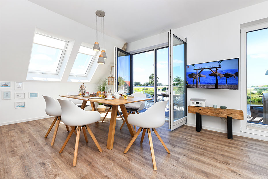 - Ruderboot fahren auf der Harle vom privaten Bootssteg mit Badeleiter aus. Je Wohnung ist ein Ruderboot vorhanden sowie ein Stand-Up-Paddle Board