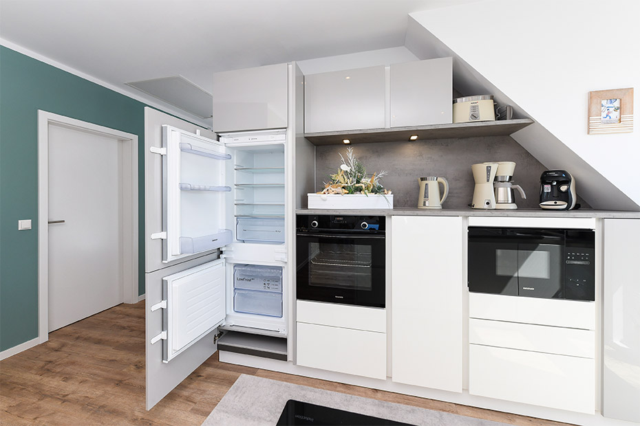 - Herd: Vierplattenherd (Ceran-Kochfelder) und Backofen